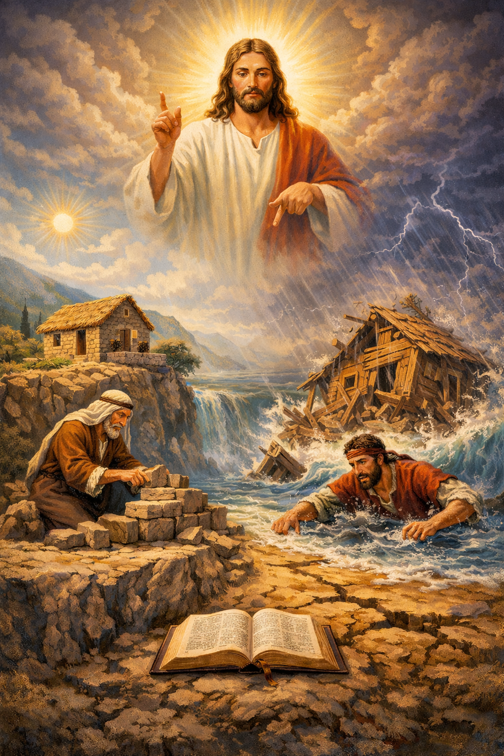 Pilda constructorilor înțelepți și nebuni, relatată de Isus în Noul Testament (Matei 7:24-27, Luca 6:46-49), descrie doi constructori: unul construiește o casă pe stâncă solidă, celălalt pe nisip. Când vin furtuni (reprezentând încercările vieții), casa de pe stâncă stă neclintită datorită temeliei sale puternice, în timp ce casa de pe nisip se prăbușește, ilustrând faptul că auzirea cuvintelor lui Isus (învățăturile lui Dumnezeu) nu este suficientă; trebuie să le punem în practică pentru a construi o viață care să dureze.